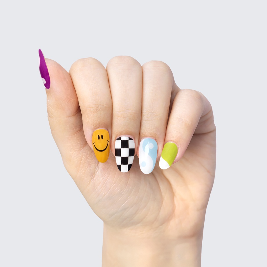 Our GLAM & GO gel nail wraps ensure that no matter how complex your chosen nail design, the application process remains incredibly simple. Our GLAM & GO gel nail wraps require no glue, base coat, or top coat—just peel them off the packaging, apply them to your nail, trim to size, cure twice, and voilà!